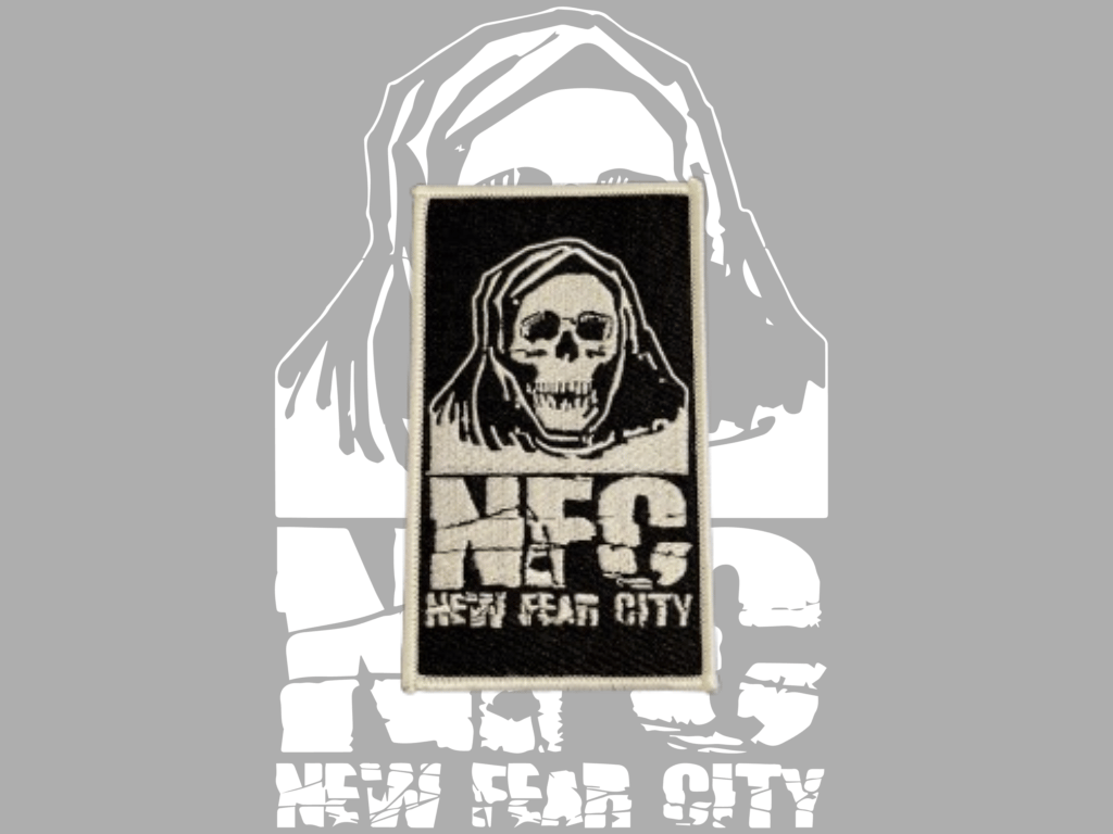 New Fear City reaper logo patch. 5"x3". Fully embroidered. Merrowed edge. Iron-on backing